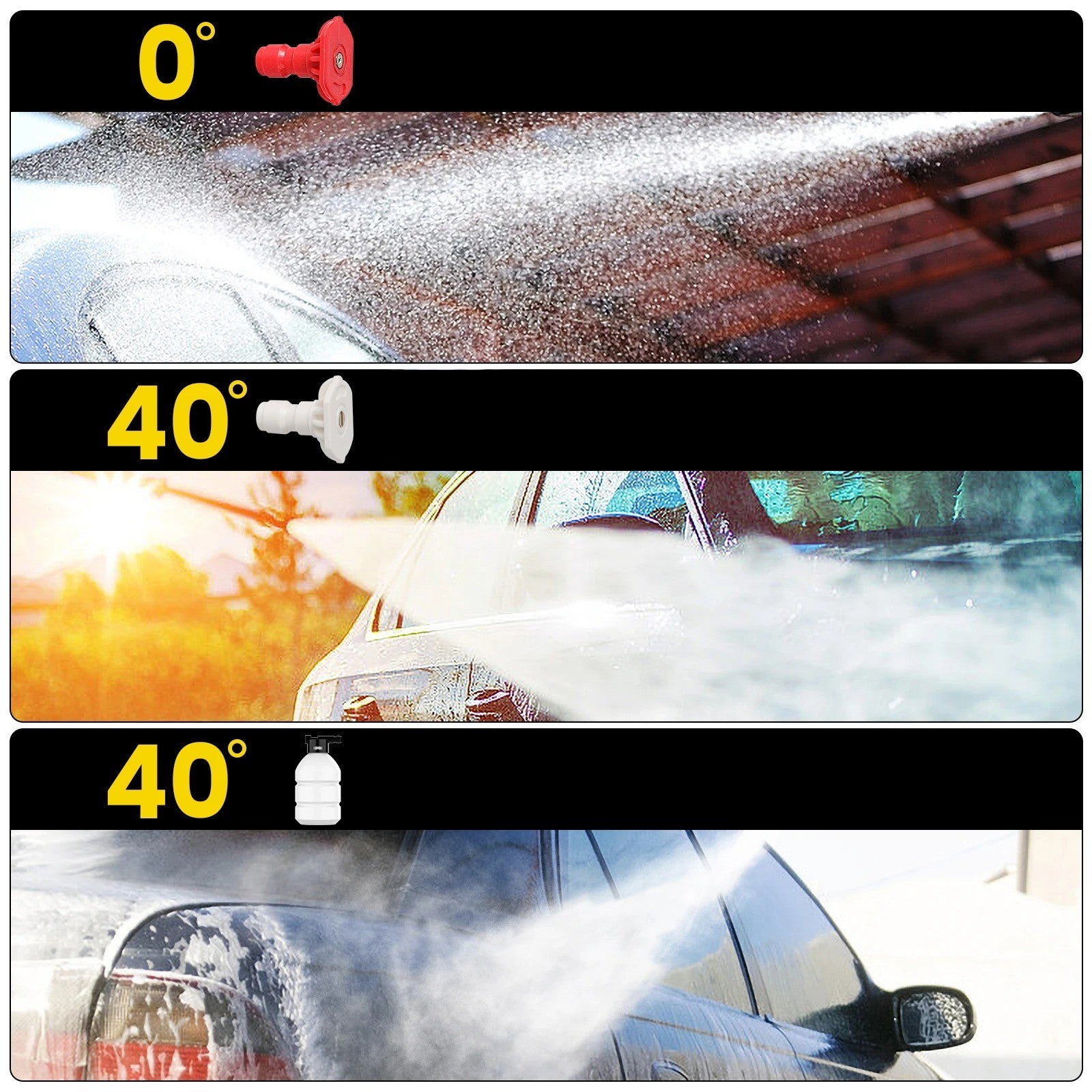 Parfait pour voitures, motos, terrasses et mobilier extérieur : il combine portée de 2–3 m et accessoires pratiques (filtre, flacon détergent) pour un nettoyage complet et rapide.